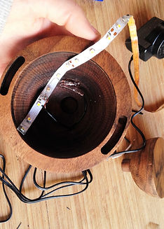 The Tumble Light is a dim lit lamp that is design for mood lighting in the bedroom. The simple motion replicates that of a tumbling stone. The base is weighted so the lamp stays firm and does not roll. This lamp functions with a mercury switch and only turns on when it is tumbled on its side. It is made of Black Walnut Wood as the base, and the interchangeable tops change the light quality of the lamp depending on the user’s preference.